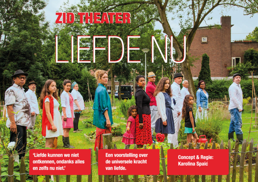 ZID Theater verbindt kunst, cultuur en samenleving door creatieve talenten van mensen in te zetten voor positieve verandering. ZID Theater speelt de nieuwe voorstelling LIEFDE NU.